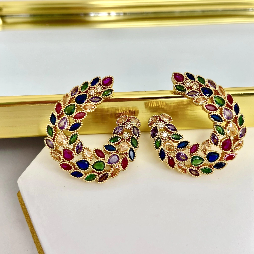 Descubra o luxo e a sofisticação dos nossos brincos femininos cravejados com zircônias. Disponíveis nas elegantes opções de prata ou dourado, ou ainda com pedras multicoloridas, essas peças são o toque perfeito para qualquer ocasião.